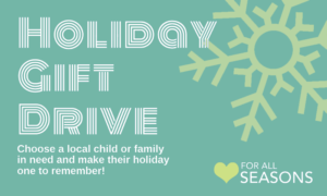 For All Seasons (FAS) has three major programs that help children and families at important junctures in the year: back to school, summer time and the holiday season. In addition to these programs, FAS also gives critical funding, quickly, for goods and services that no other agency can provide to families in need. We believe our ability to help with these “little things” can make a big difference in the lives of children and their families.